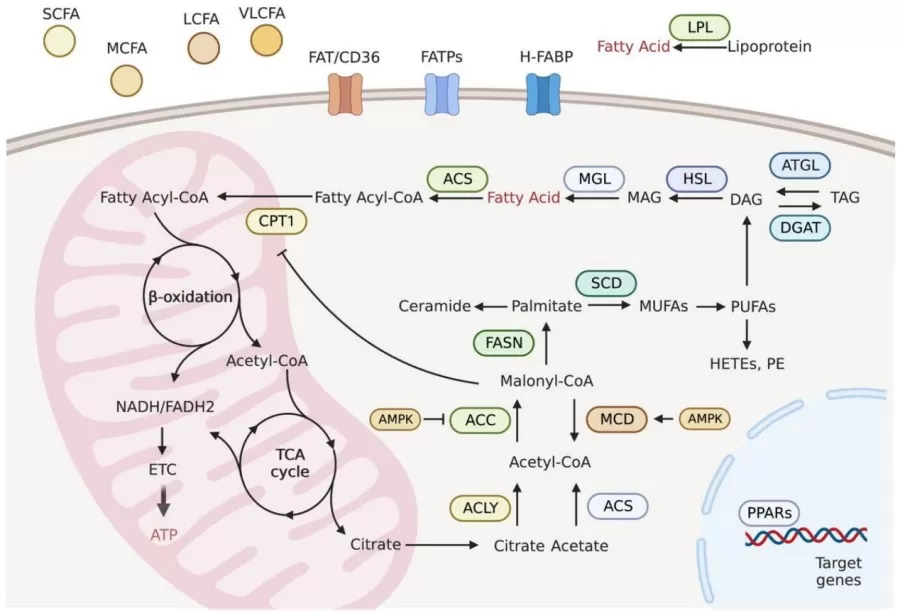 The diagram of fatty acid metabolism (Li and Bi, 2023)